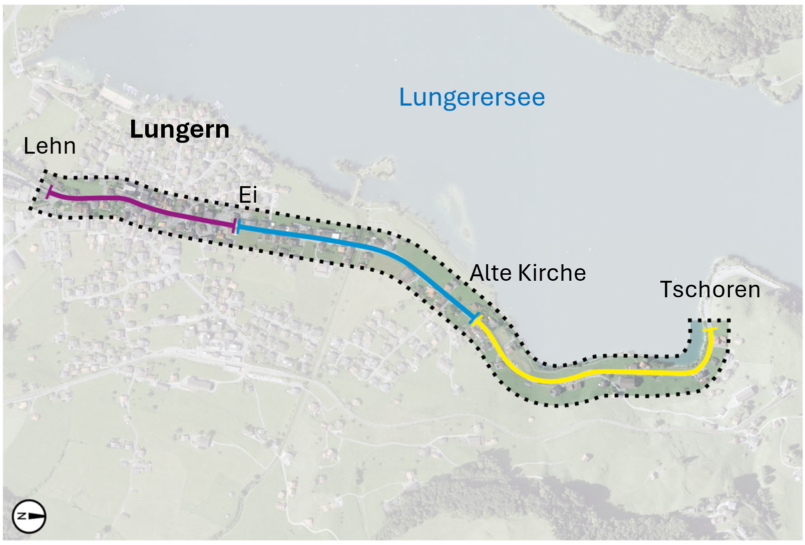 Die Ortsdurchfahrt durch Lungern soll im Rahmen eines umfassenden Projekts neugestaltet werden. Ziel ist es, den Veloverkehr zu fördern, die Verkehrssicherheit zu erhöhen und die Aufenthaltsqualität zu verbessern. Dabei wird ein Fuss- und Veloweg im Ausserortsbereich sowie eine Kernfahrbahn mit Tempo 30 im Innerortsbereich realisiert. Der Kanton Obwalden übernimmt als Eigentümer der Kantonsstrasse gemeinsam mit der Gemeinde Lungern die Rolle der Bauherrschaft und beauftragt einen gemeinsamen «Gesamtplaner». Dieses kooperative Vorgehen gewährleistet eine einheitliche und abgestimmte Projektierung sowie eine koordinierte Realisierung. Eine Besonderheit dieser Beschaffung ist die frühzeitige Einbindung der Werke, um deren Bedürfnisse präzise zu erfassen und in die Ausschreibung für den «Gesamtplaner» zu integrieren.